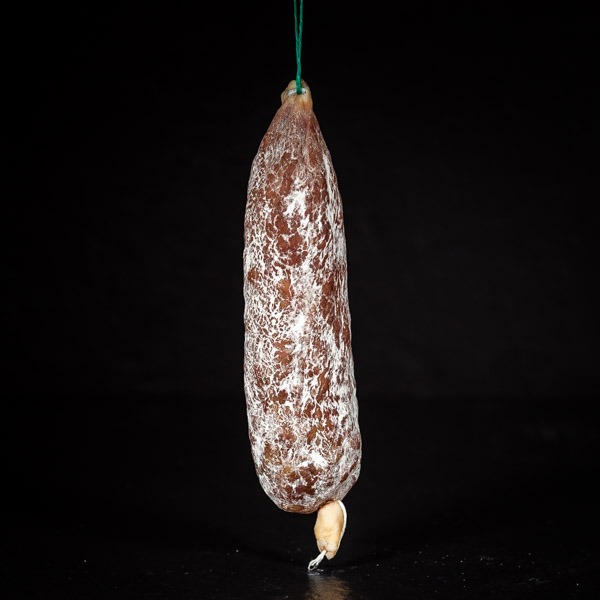 Maigre de canard, maigre et gras de porc, bœuf de Chalosse, sel, poivre, épices, extrait d'épices, sucre, salpêtre, ferments lactiques, boyaux de porc.